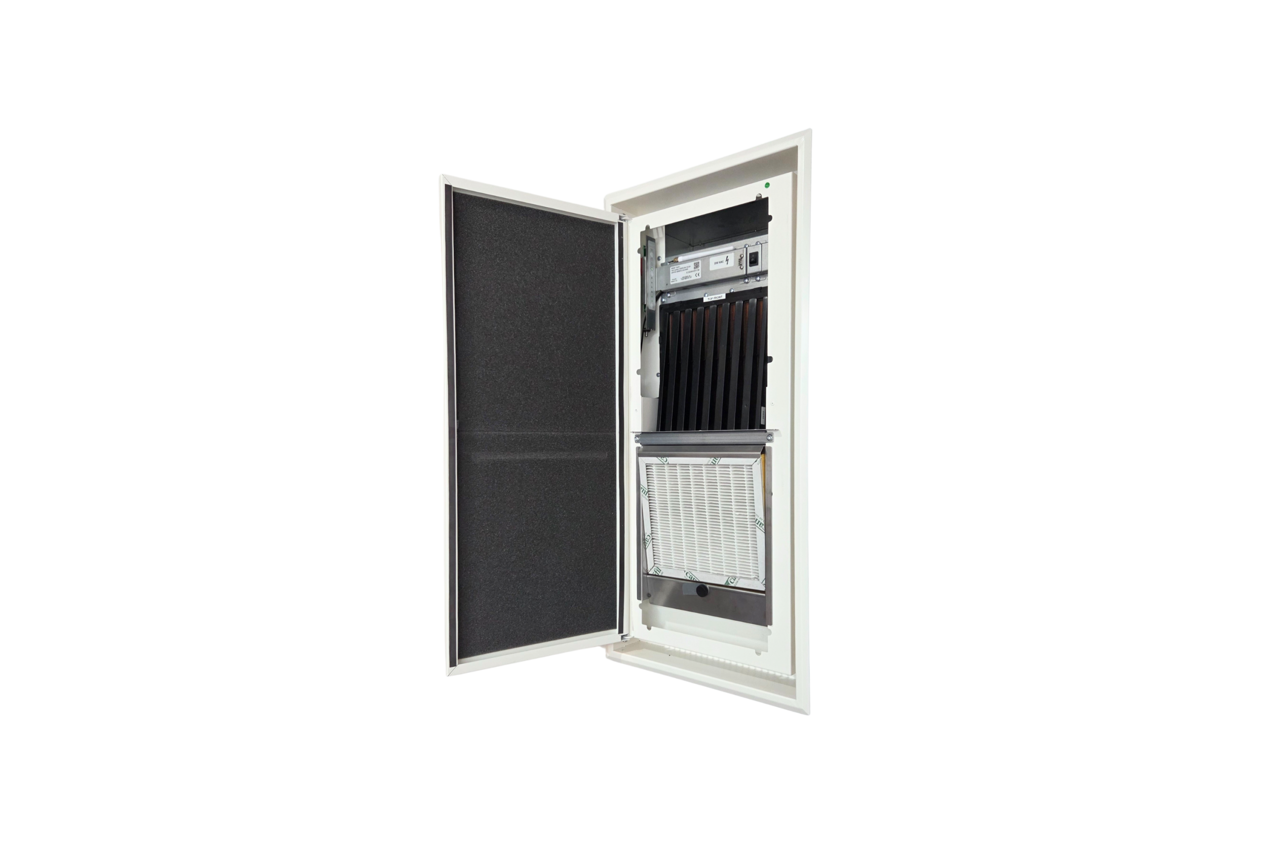 Deze decentrale ventilatie-unit van Fresh-r is geschikt voor inbouw in de muur en biedt een stille, energiezuinige oplossing voor woningen en utiliteit. De unit is volledig weggewerkt in de wand en levert zo een onopvallende en efficiënte ventilatieoplossing met warmteterugwinning.