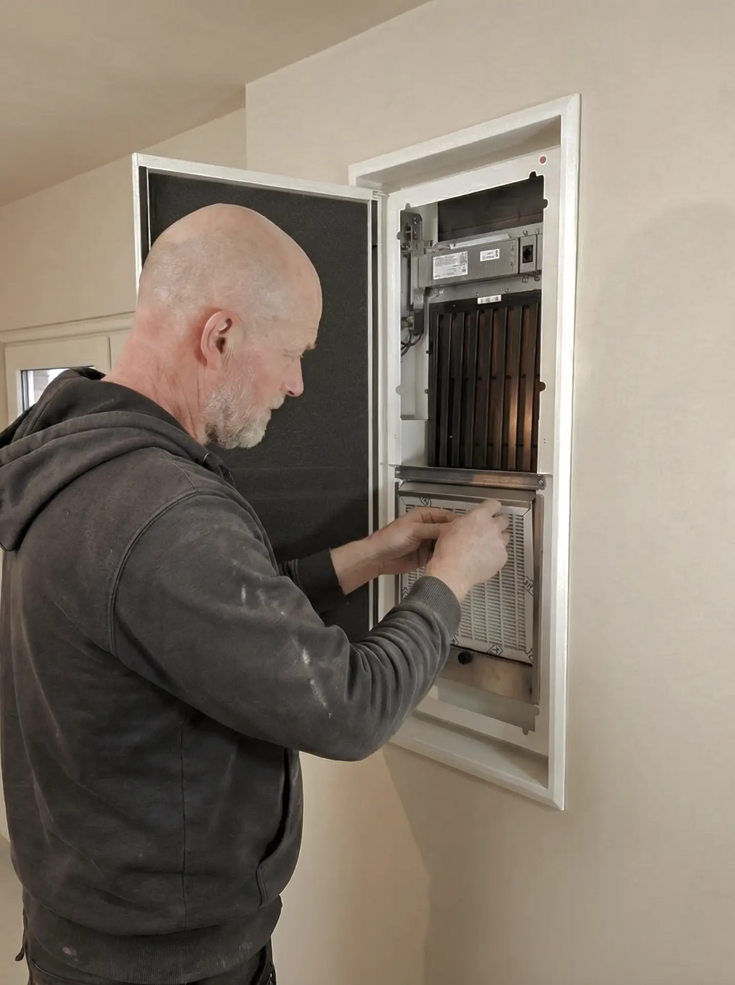 De inbouwconstructie maakt deze unit ideaal voor nieuwbouw en hoogwaardige renovatieprojecten, waarbij ventilatie discreet geïntegreerd moet zijn.